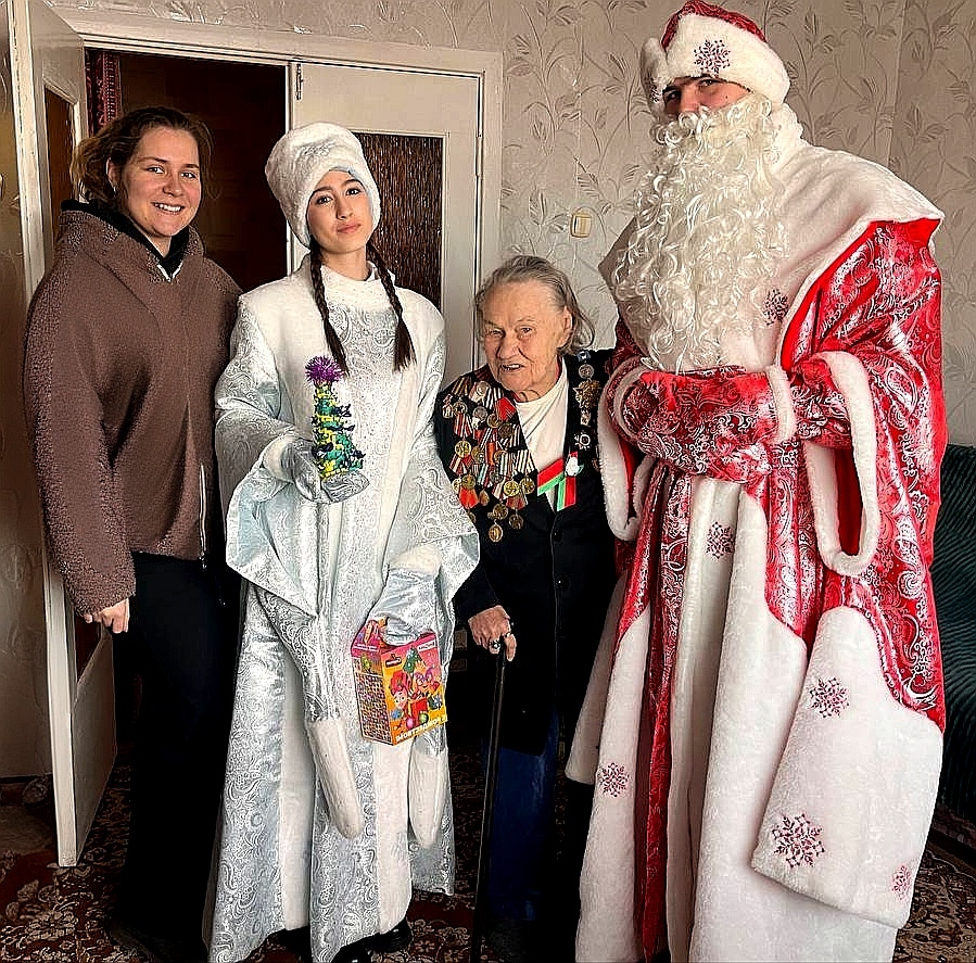 В рамках Республиканской акции « От всей души» 13.01.2026 государственное учреждение «Территориальный центр социального обслуживания населения Московского района г. Бреста» совместно с активистами   Московского районного комитета Общественного объединения «Белорусский республиканский союз молодёжи» г. Бреста  навестили подопечных первого отделения социальной помощи на дому и поздравили их с рождественскими праздниками.   Отдельное внимание уделили ветерану Великой Отечественной войны Таисии Михайловне Козырь-Павловской  и  узнице Лилии Леонардовне  Демидюк,  пожелали им  крепкого здоровья, тепла и праздничного настроения, а также вручили сладкие подарки.