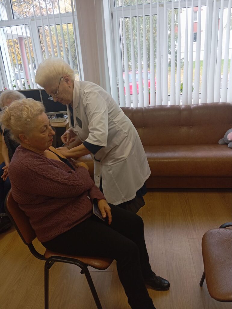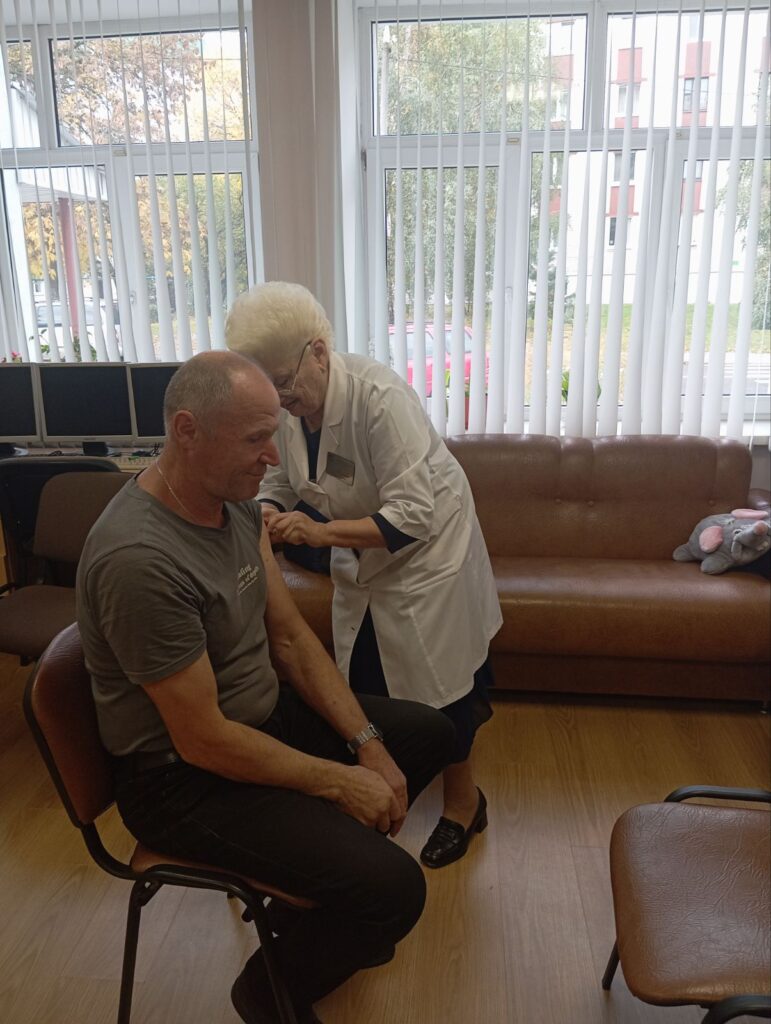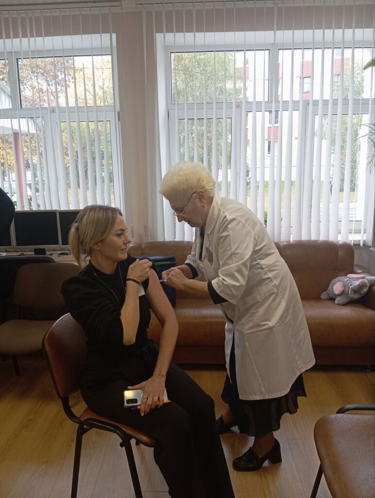 Сотрудники государственного учреждения «Территориальный центр социального обслуживания населения Московского района г. Бреста» приняли участие в прививочной компании против гриппа и других сезонных инфекций. Большую часть времени сотрудники территориального центра проводят в контакте с другими людьми, в частности с людьми пожилого возраста. Риск распространения вируса гриппа при этом высок. Передача вируса происходит легко и просто: при разговоре, кашле, чихании. Для предупреждения гриппа и острых респираторных вирусных инфекций существуют различные способы защиты. Наиболее эффективным, удобным и безопасным средством профилактики гриппа являются современные вакцины. На сегодняшний день прививка – самый надежный способ обезопасить себя от заражения гриппом и избежать осложнений.
