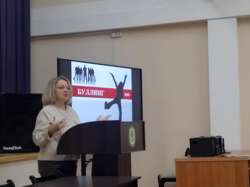 24 октября 2025 года психолог государственного учреждения «Территориальный центр социального обслуживания населения Московского района г. Бреста» — Шпиталева Е.В. выступила на общешкольном родительском собрании в государственном учреждении образования «Средняя школа № 31 г. Бреста» по теме: «Профилактика буллинга в подростковой среде». Цель выступления: сделать родителей активными союзниками в борьбе с буллингом, вооружить их знаниями и инструментами для своевременного выявления, предотвращения и эффективного реагирования на случаи травли в подростковой среде, тем самым создавая безопасное и поддерживающее пространство для развития их детей.