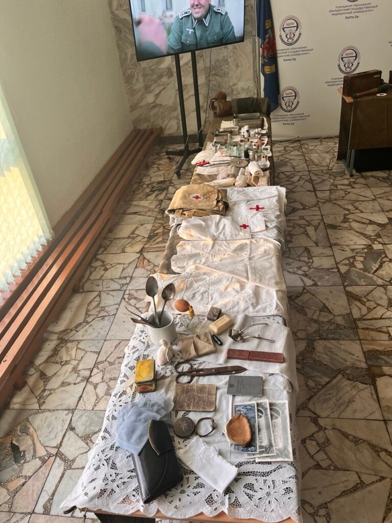 С 23 по 24 апреля 2026 года социальный работник Государственного учреждения «Территориальный центр социального обслуживания населения Московского района г. Бреста» Татьяна Петровна Гайдукевич, являясь членом Военно-исторического клуба «Гарнизон», приняла участие в знаковом событии – пятом Белорусско-Российском патриотическом форуме «Нам жить и помнить», приуроченном к годовщине Победы советского народа в Великой Отечественной войне. Форум, собравший более трех тысяч студентов ведущих вузов России и Беларуси в стенах Белорусского государственного медицинского университета в Минске, был посвящен осмыслению истории и сохранению памяти. Особое внимание на мероприятии было уделено героическому подвигу медицинских работников в годы Великой Отечественной войны. Татьяна Петровна внесла свой уникальный вклад, представив личную коллекцию. Экспонаты, включавшие элементы солдатского и гражданского быта времен Великой Отечественной войны, гармонично сочетались с медицинскими артефактами периода. Первой мировой войны, демонстрируя преемственность и значимость врачебного служения в разные эпохи.