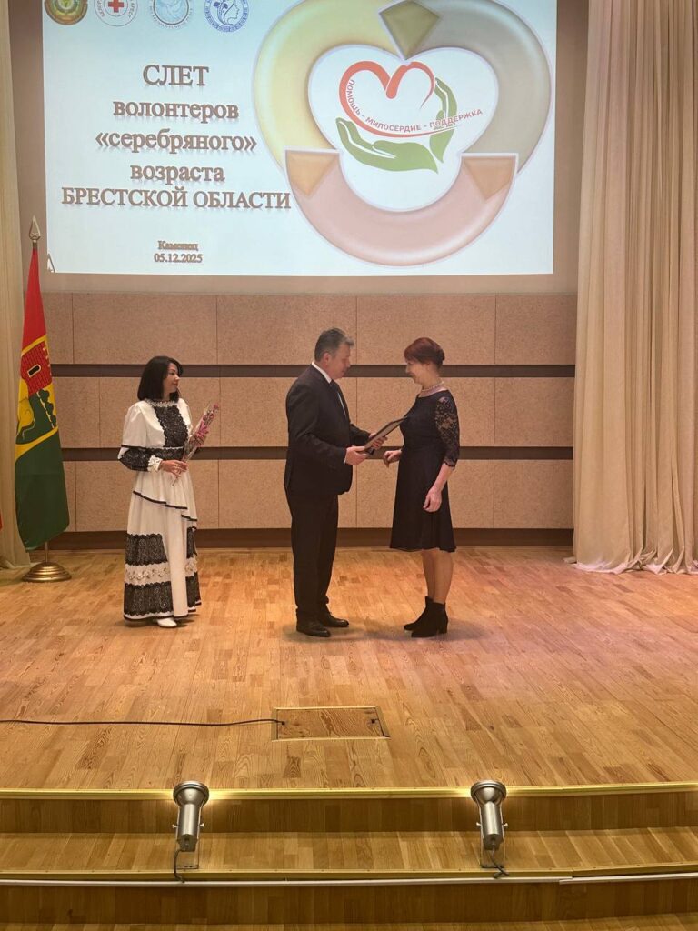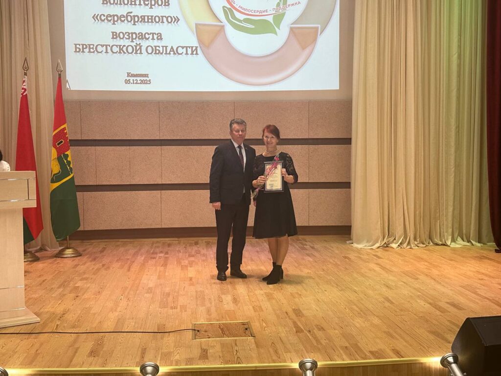 Волонтер «серебряного» возраста отделения дневного пребывания для граждан пожилого возраста государственного учреждения «Территориальный центр социального обслуживания населения Московского района г.Бреста» Кульченко Виктория Павловна 5 декабря приняла участие в областном мероприятии, приуроченном к Международному Дню волонтера. Виктория Павловна награждена благодарностью комитета по труду, занятости и социальной защите Брестского облисполкома за развитие волонтерского движения, способствующего реализации потенциала пожилых граждан.