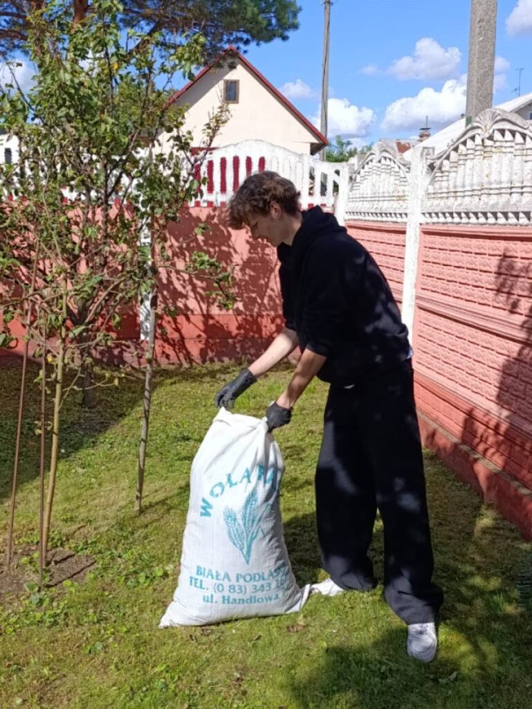 В рамках мероприятий акции «Уважение. Забота. Ответственность», приуроченной ко Дню пожилых людей, представителями государственного учреждения «Территориальный центр социального обслуживания населения Московского района г. Бреста» совместно с учениками государственного учреждения образования «Средняя школа №1 г. Бреста» проведена акция по наведению порядка на придомовой территории у граждан пожилого возраста, состоящих на обслуживании в первом отделении социальной помощи на дому. В ходе акции волонтеры навели порядок во дворах, подмели придомовую территорию, убрали листья, вынесли лишний мусор и т.д.